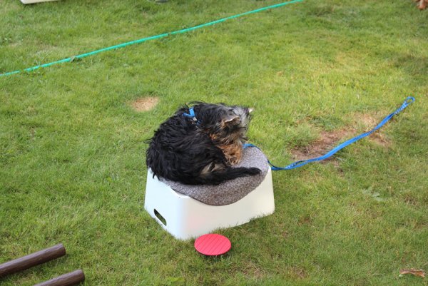 Warum muß es in Ellwangen die letzten Male nur immer regnen- das ist einfach kein Wetter für uns....Bree läuft eine sehr schöne Unterordnung mag sich aber in der Box und Distanz nicht legen- da reicht es in der 2 schon nicht mehr zum Bestehen 161,5 Punkte. Andi rettet die Yorkieehre und erzielt ein SG mit 246 Punkten in der 2.