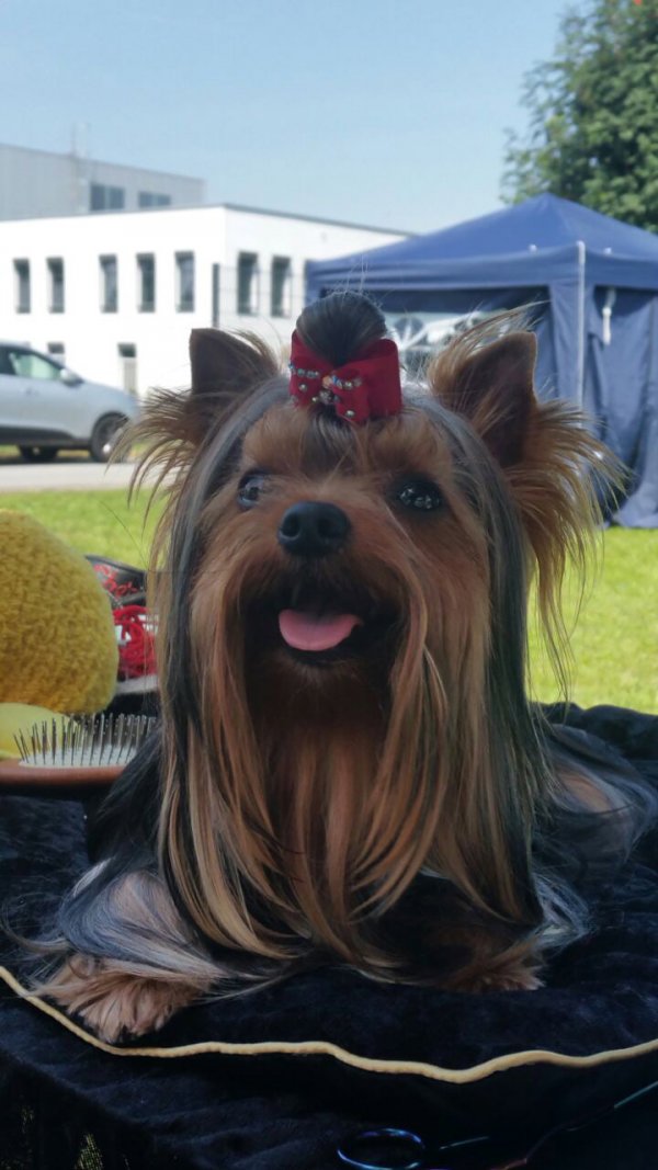 Der 28.8.1994 war und bleibt für immer der schönste Tag in meinem Leben; gegen Mittag wurde Chipie geboren- 90g wogen sie und ihre Schwester... Der erste von zwei Welpen, mein allererster Wurf, ein unvergessliches Erlebnis und die vielen wunderschönen Jahre die mir mit meiner geliebten kleinen Chipie vergönnt waren.. Sie hat mich durchs Studium begleitet, bekam von meinen Kollegen ein extra Wägelchen zu meiner Doktorfeier mit dem wir beide dann über den Campus chauffiert wurden, sie begleitete mich auf meinen ersten Job, erlebte noch den Kauf unseres eigenen Hauses und hat den riesigen Garten sehr geliebt. Im Hundesport war sie der erste Hund den ich ausbildete und trotz aller Anfängerfehler vollbrachte sie einzigartige Erfolge, die wohl nie wieder ein Yorkie erreichen wird.