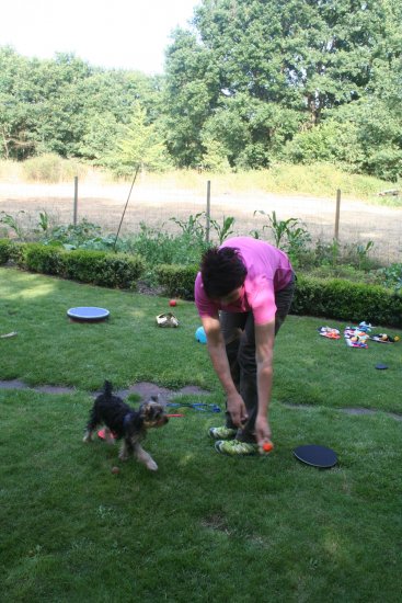 Frenzi hüpft über den Fuß